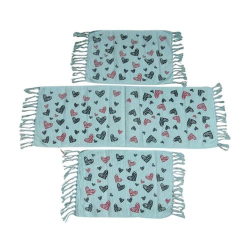 Kit 3 Passadeira Rosa De Cozinha Corredor Estampa Geométrica Tecido Grosso Tear Nozinho 100% Algodão Modelo Coração Colo