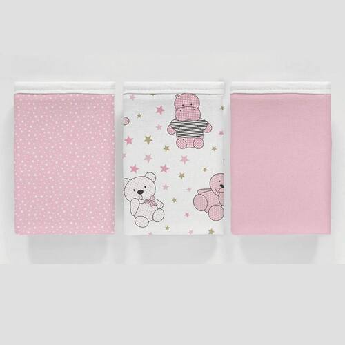 Características do Produto Conteúdo: 3 fronhas tamanho 30x40cm. Tecido: Malha 30/1 penteada, especialmente tratada para maior maciez e resistência. Gramatura: 120g/m, ideal para proporcionar conforto sem perder elasticidade. Composição: 100% algodão, garantindo um toque natural e respirável. Estampa enviada: BICHINHO ROSA.