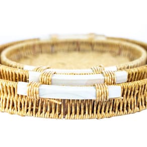 Kit 3 peças Bandejas Redondas em Madeira Kit de Bandejas Redondas em Madeira - Sofisticação e Funcionalidade Acabamento natural que valoriza a textura da madeira Perfeitas para servir café da manhã, petiscos ou organizar utensílios Estrutura robusta que garante durabilidade e firmeza Formato arredondado que traz um toque moderno e acolhedor Variedade de tamanhos para diferentes ocasiões e usos Leves e empilháveis, otimizam espaço e facilitam o transporte Ideal para uso doméstico ou , agregando valor ao seu dia a dia Combinando utilidade e beleza, este kit de bandejas é a escolha perfeita para quem busca servir com charme e organizar ambientes com estilo. Transforme suas apresentações e crie composições decorativas incríveis Especificações: Bandeja pequena: 24 x 3,5 cm Bandeja média: 30 x 4,5 cm Bandeja grande: 35 x 4,5 cm Formato: redondo Material: plástico, metal e madeira Empilháveis: sim Conteúdo: 01 Kit com 3 peças de Bandejas Redondas em Madeira Marca: Não Informado