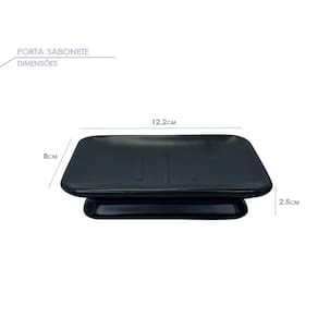 -material: porcelana e pvc -dimensões do porta sabonete líquido: 7,5cm de largura x 7,5cm de profundidade x 16cm de altura -dimensões do porta escovas: 7,5cm de largura x 7,5cm de profundidade x 11cm de altura -dimensões da saboneteira: 12,2cm de largura x 8cm de profundidade x 2,5cm de altura -cor: preto -3 peças