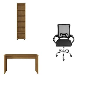 O Conjunto é composto por uma cadeira, uma escrivaninha e uma Estante para Livros feitos com MDP para dar aquele ar de robustez e beleza. É a combinação perfeita e versátil para seu home office, combinando também com vários ambientes, desde um simples local para estudos até um escritório. A Mesa para Escritório possui design simples e elegante; O livreiro é ideal para guardar e ajudar a organizar os seus livros com 5 prateleiras (sendo 3 removíveis), tudo para deixar o seu ambiente harmonizado. As peças possuem as seguintes medidas: Escrivaninha Multiuso 16443.135: 75x127x53cm (AxLxP) Estante 16449.135: 189x63x39cm (AxLxP) Acabamento: Pintura UV Altura do Conjunto: 188 cm Ambiente: null Ambiente Principal: Escritório Cor: Freijó/Preto Informação Complementar: 1x Cadeira para Escritório Diretor Tela Mesh Tok 3310 Or Design Preto Largura: 59,5 cm Altura: 85 cm Peso: 8,5 kg Profundidade: 49 cm Necessita Montagem: Sim