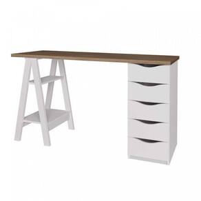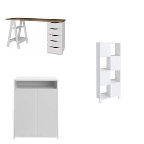 Atualize seu espaço com o Kit 3 Peças que combina modernidade e funcionalidade de maneira impecável. A Escrivaninha Moderna com Pés de Cavalete traz um toque contemporâneo e elegante, oferecendo uma superfície ampla e versátil para suas atividades. O Armário com Nichos é perfeito para exibir livros, objetos decorativos e manter tudo organizado com estilo. Complemente o conjunto com o Balcão de 2 Portas, ideal para armazenar documentos e itens essenciais de forma prática e discreta. Este kit é a escolha ideal para criar um ambiente de trabalho que une design sofisticado e máxima eficiência. Transforme seu escritório com esta combinação única de modernidade e organização! Acabamento: BP Altura do Conjunto: 145 cm Ambiente: null Ambiente Principal: Escritório Cor: Nogal/Branco Informação Complementar: 1x Escrivaninha Moderna Spirit com 5 Gavetas e 2 Prateleiras Nogal/Branca Largura: 135 cm Altura: 75 cm Peso: 30 kg Profundidade: 48 cm Necessita Montagem: Sim