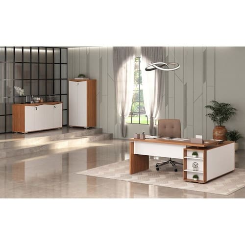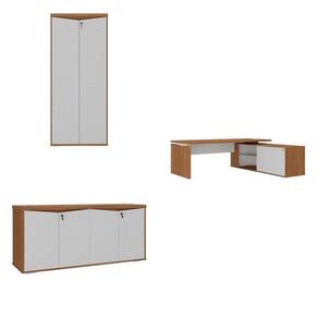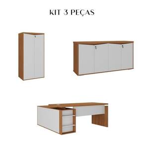 Transforme seu escritório com o Kit 3 Peças, que inclui a imponente Mesa para Escritório Diretor, o elegante Balcão 4 Portas e o funcional Armário Multiuso 2 Portas. A Mesa para Escritório Diretor oferece uma superfície ampla e robusta, ideal para reuniões e trabalho diário, enquanto o Balcão 4 Portas proporciona amplo espaço de armazenamento, mantendo o ambiente organizado e acessível. Complementando o conjunto, o Armário Multiuso 2 Portas é perfeito para armazenar arquivos e equipamentos de forma eficiente. Este kit une sofisticação e praticidade, criando um espaço de trabalho elegante e produtivo. Acabamento: BP Altura do Conjunto: 160.6 cm Ambiente: null Ambiente Principal: Escritório Cor: Freijó/Branco Informação Complementar: 1x Armário Alto para Escritório com Chave 2 Portas Freijó/Branco Largura: 77 Altura: 160.6 Peso: 56.74 Profundidade: 44.4 Necessita Montagem: Sim