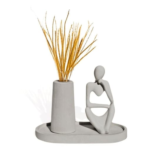 -Procurando por uma maneira fácil de adicionar um toque de beleza moderna à sua casa, cozinha ou escritório? Apresentamos a você o nosso Kit 3pçs Decoração Estátua Pensadora, Garrafa Tubo e Bandeja.