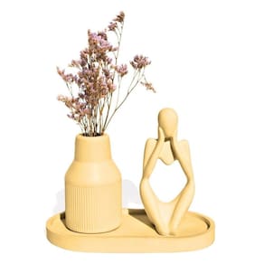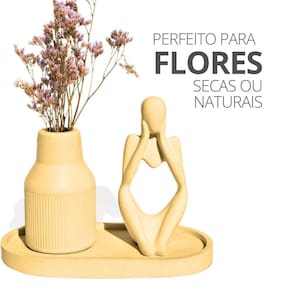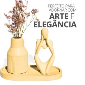 Conteúdo do 1 Estátua Pensadora, 1 Garrafa Tubo Listrada, 1 Bandeja Oval e flores secas (enviamos conforme disponibilidade de cor e modelo)
