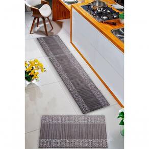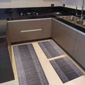 Composição do Kit:- 1 Passadeira de 0,50 x 1,50 m perfeita para frente da pia ou bancadas maiores- 2 Tapetes de 0,50 x 0,75 m ideais para frente do fogão e da geladeiraAs três peças combinam entre si, formando um conjunto harmonioso que protege o piso e valoriza a decoração do ambiente.