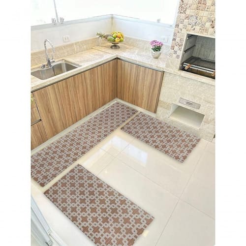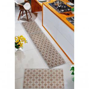 Composição do Kit:- 1 Passadeira de 0,50 x 1,50 m perfeita para frente da pia ou bancadas maiores- 2 Tapetes de 0,50 x 0,75 m ideais para frente do fogão e da geladeiraAs três peças combinam entre si, formando um conjunto harmonioso que protege o piso e valoriza a decoração do ambiente.