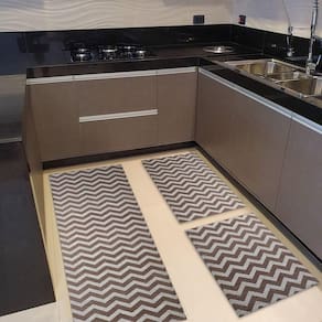 Composição do Kit:- 1 Passadeira de 0,50 x 1,50 m perfeita para frente da pia ou bancadas maiores- 2 Tapetes de 0,50 x 0,75 m ideais para frente do fogão e da geladeiraAs três peças combinam entre si, formando um conjunto harmonioso que protege o piso e valoriza a decoração do ambiente.