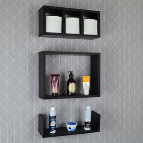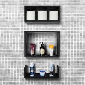 Kit 3 Peças Nicho Prateleira Para Banheiro 40 X 12cm Preto O Kit 3 Peças Nicho Prateleira para Banheiro 40 x 12cm Preto é a escolha perfeita para quem busca criatividade e organização de espaço no banheiro. Organize os rolos de papel higiênico, produtos de higiene pessoal e demais decorações que seu banheiro merece!