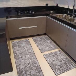 Ideal para quem busca praticidade sem abrir mão da elegância, o kit é composto por:- 1 tapete de 0,66 x 1,50 m perfeito para uso como passadeira em corredores ou frente à pia;- 2 tapetes de 0,66 x 0,75 m ideais para posicionar em frente ao fogão ou áreas de preparo.