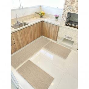 Transforme sua cozinha com estilo, conforto e funcionalidade com este kit exclusivo de 3 peças em tecido tipo sisal! Com largura diferenciada de 0,66 metros mais largo que os modelos tradicionais de 0,50 m este conjunto é ideal para quem busca sofisticação e maior cobertura em ambientes como cozinhas, áreas de serviço ou corredores. O toque especial fica por conta da borda infinita sem costura e sem ponteira de metal, que garante acabamento mais limpo, moderno e elegante e não tem risco de arranhar o piso ou machucar quando pisar.