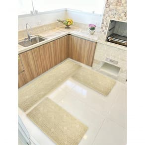 Kit 3 Peças Jogo Tapete Cozinha PS Largo 0,66 Antiderrapante com Borda Infinita