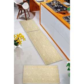 Kit com 3 peças:- 1 tapete de 0,66 x 1,50 m- 2 tapetes de 0,66 x 0,75 m