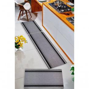 Kit 3 Peças Jogo Tapete Cozinha PS Largo 0,66 Antiderrapante com Borda Infinita