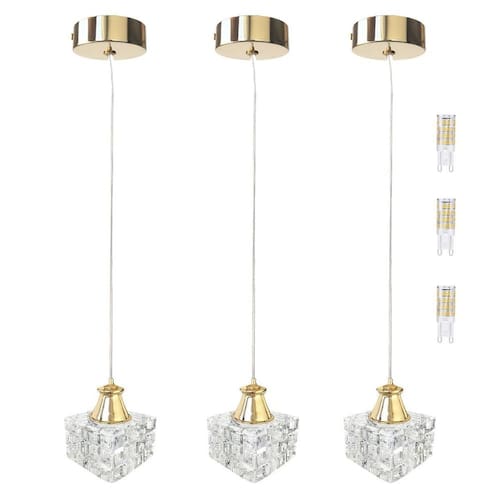 Kit 3 Pendente De Cristal Detalhe Dourado Cabeceira Bet42 + Led