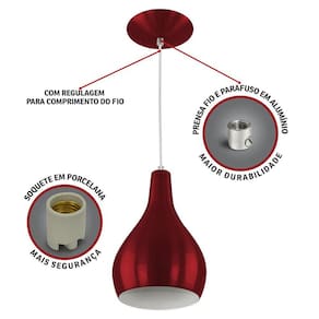 O charme e a inovação dentro de seu ambiente, produto produzido todo em alumínio desde a canopla até o prensa fio, este com ajuste de altura para maior comodidade e modernidade de seu ambiente, soquete em porcelana, tudo para que seu produto tenha mais qualidade, segurança e vida prolongada, não utilizamos nada em plástico para maior durabilidade e sem risco de possíveis curtos.
