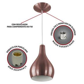 O charme e a inovação dentro de seu ambiente, produto produzido todo em alumínio desde a canopla até o prensa fio, este com ajuste de altura para maior comodidade e modernidade de seu ambiente, soquete em porcelana, tudo para que seu produto tenha mais qualidade, segurança e vida prolongada, não utilizamos nada em plástico para maior durabilidade e sem risco de possíveis curtos.