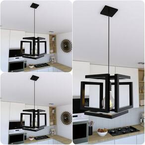 O formato do pendente proporciona uma iluminação suave e agradável, sua canopla é quadrada para harmonização da peça.