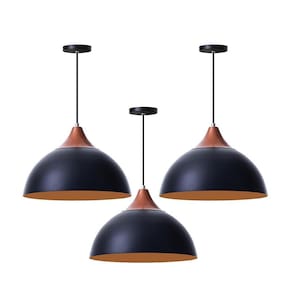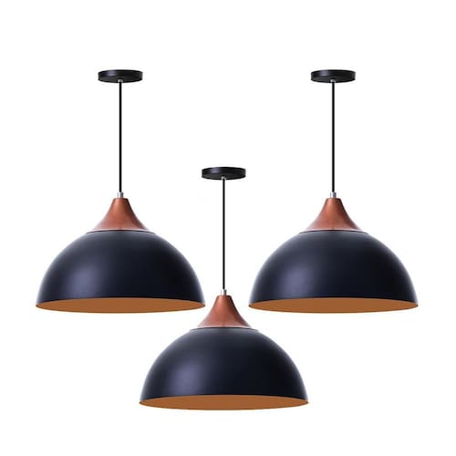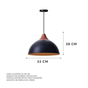 Kit 3 Pendentes Meia Lua Preto 30Cm Com Chapéu Cobre - dimensões: 28x33cm - canopla redonda de 11cm de diâmetro - produto feito em alumínio - 150cm de fio ajustável - pronto para instalação - utilize a lâmpada que desejar - soquete e-27 - garantia de 6 meses contra defeitos de fabricação - produto bivolt - lâmpadas não inclusas neste produto.