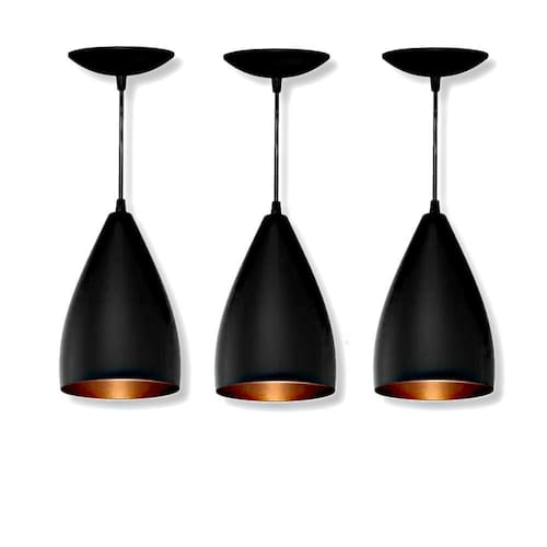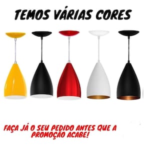 Kit 3 pendentes vegas casa qualidade excelente Kit 3 luminarias pendentes bala lustre sala jantar teto Neste anúncio contém 3 pendentes Acompanha: 3 cabos de 1 metros regulável 3 canoplas para fixação no teto da mesma cor externa dos pendentes com 13,5 cm de diâmetro ideal para bancadas, ambientes como cozinha, aréa gourmet, sala de jantar, bares, etc Pendente cor externa preta Cabo preto + prensa cabo preto Pendente cor externa branca Cabo branco + prensa cabo branco Pendente cor externa colorida Cabo cristal + prensa cabo cromado Medidas do pendente Anexo as fotos deste anúncio Não acompanha lâmpadasAcabamento:Pintura eletrostática de alta qualidadeImpecável, sem manchas e contaminação Marca: Illumina