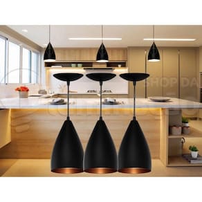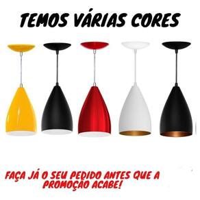 Kit 3 pendentes vegas casa qualidade excelente Kit 3 luminarias pendentes bala lustre sala jantar teto Neste anúncio contém 3 pendentes Acompanha: 3 cabos de 1 metros regulável 3 canoplas para fixação no teto da mesma cor externa dos pendentes com 13,5 cm de diâmetro ideal para bancadas, ambientes como cozinha, aréa gourmet, sala de jantar, bares, etc Pendente cor externa preta Cabo preto + prensa cabo preto Pendente cor externa branca Cabo branco + prensa cabo branco Pendente cor externa colorida Cabo cristal + prensa cabo cromado Medidas do pendente Anexo as fotos deste anúncio Não acompanha lâmpadasAcabamento:Pintura eletrostática de alta qualidadeImpecável, sem manchas e contaminação Marca: Illumina