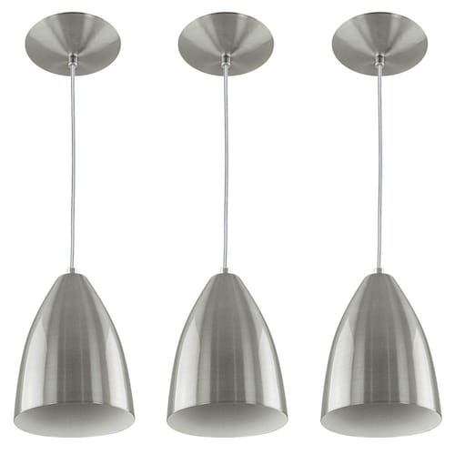 - Pendente modelo Vegas Premium - Dimensões: 14 (largura) x 18,5 (altura) cm - Canopla Redonda aprox. de 13 cm de diâmetro em aluminio - Vegas em Alumínio - Prensa fio em aluminio com ajuste - Aprox. 120 cm de Fio PP - Soquete E-27 de porcelana
