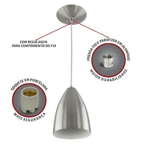 O charme e a inovação dentro de seu ambiente, produto produzido todo em alumínio desde a canopla até o prensa fio, este com ajuste de altura para maior comodidade e modernidade de seu ambiente, soquete em porcelana, tudo para que seu produto tenha mais qualidade, segurança e vida prolongada, não utilizamos nada em plástico para maior durabilidade e sem risco de possíveis curtos.