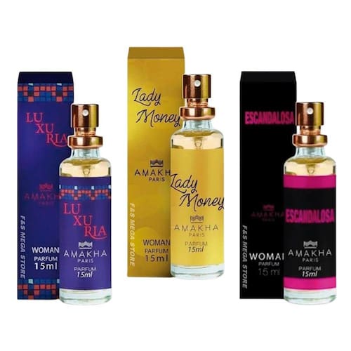 Kit 3 Perfume Feminino Amakha Luxuria Lady Money Escandalosa