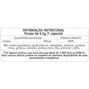 Kit 3 picolinato de cromo 500mg clinicmais 60 cápsulas ingredientes: cromo picolinato de cromo . Excipiente: amido. Antiumectante: dióxido de silício. Composição da cápsula: gelatina, opacificante inorgânico dióxido de titânio. não contém glúten. Recomendações de uso Indicação: indivíduos com idade maior ou igual a 19 anos. Sugestão de consumo: ingerir 1 cápsula ao dia. Este produto não é um . Não exceder a recomendação diária de consumo indicada na embalagem. Mantenha fora do alcance de crianças. Marca: Não Informado Ean: 7908609542712