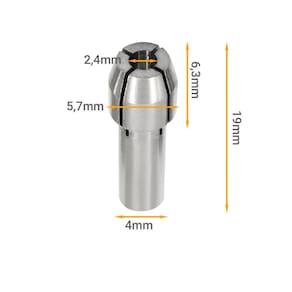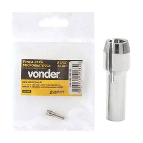 - Marca: Vonder - Kit exclusivo com 3 pinças - Diâmetro do furo: 2,4mm 3/32 Polegadas - Pega haste e acessórios de 2,1 a 2,5mm - Indicada para a fixação de acessórios em micro retíficas - Atenção as dimensões apresentadas abaixo e nas fotos para verificar se é compatível com a sua micro retífica - Diâmetro da Base: 4mm - Diâmetro da cabeça: 5,7mm - Comprimento da cabeça: 6,3mm - Comprimento total: 19mm 3/4 Pol. - Hastes de metal duráveis para uso duradouro - Material: Aço - Rotação máxima: 35.000rpm - Garantia: 90 dias