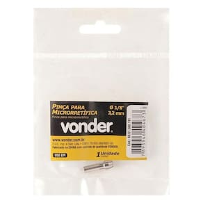 - Marca: Vonder - Kit exclusivo com 3 pinças - Diâmetro do furo: 3,2mm 1/8 Polegadas - Indicada para a fixação de acessórios em micro retíficas - Uso em micro retíficas de qualquer marca Marca: Não Informado Ean: 7794569694413