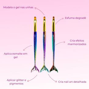 Nosso Kit Pincéis Sereia para Manicures, foi projetado com materiais de alta qualidade, cerdas macias e precisas. Desenvolvidos para decoração de unhas e alongamentos como de gel, acrílico e porcelana. Permitem a criação de lindos desenhos, modelos, formas e pinturas artísticas, em unhas naturais ou artificiais. Indispensáveis em seu studio e salão Seu maior diferencial são seus cabos, que além de um design lindo, possui relevo nas escamas oque não permite que escorreguem das mãos e sejam confortáveis de segurar por muito tempo. O formato língua de gato em 3 espessuras diferentes te acompanha em vários processos, como aplicação de material, criação de degradê, acabamentos finos e diversas decorações