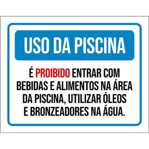 Kit 3 Placa Da Piscina Proibido Entrar Com Bebidas 36x46 Placas de sinalizaço fabricadas com poliestireno de alto impacto PSAI de 2mm e impressão ultravioleta.