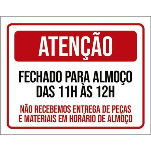 Kit 3 Placa Fechado Almoço 11 As 12 Entregas Materiais 36x46 Placas de sinalizaço fabricadas com poliestireno de alto impacto PSAI de 2mm e impressão ultravioleta.