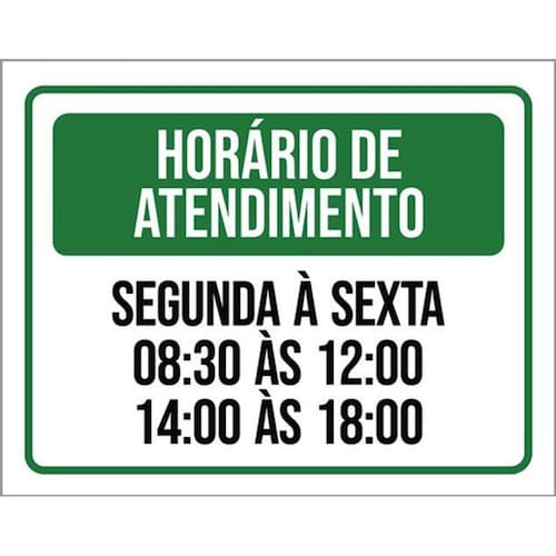 Kit 3 Placa Horário Atendimento Segunda Sexta 12 14 18 36x46 Placas de sinalizaço fabricadas com poliestireno de alto impacto PSAI de 2mm e impressão ultravioleta.