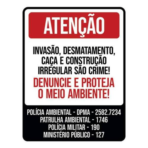 Kit 3 Placa Invasão Desmatamento Caça Denuncie 36x46 Placas de sinalizaço fabricadas com poliestireno de alto impacto PSAI de 2mm e impressão ultravioleta.