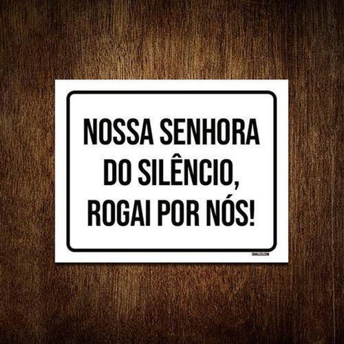 Kit 3 Placa Nossa Senhora Do Silêncio Rogai Por Nós - Informações do Produto: Placas decorativas fabricadas com poliestireno de alto impacto PSAI de 2mm e impressão ultravioleta. - Medidas: 18cm x 23cm - Fixação: Todas as placas possuem adesivo dupla face para aplicação em qualquer tipo de superfície lisa. Garantia de 12 meses e disponibilidade imediata. Marca: Sinalizo