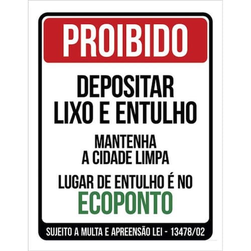 Kit 3 Placa Proibido Depositar Lixo E Entulho Ecoponto 36X46