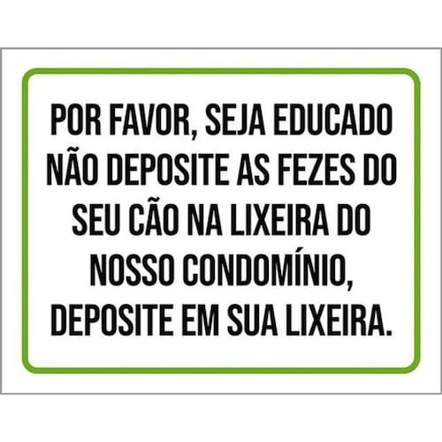 Kit 3 Placa Seja Educado Não Deposite Fezes Do Seu Cão 36x46 Placas de sinalizaço fabricadas com poliestireno de alto impacto PSAI de 2mm e impressão ultravioleta.