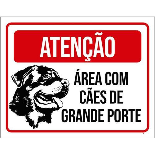 Kit 3 Placas - Atenção Área Com Cães Grande Porte Placas de sinalizaço fabricadas com poliestireno de alto impacto PSAI de 2mm e impressão ultravioleta.