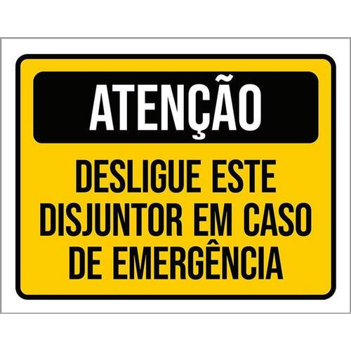 Kit 3 Placas Atenção Desligue Disjuntor Caso Emergência Placas de sinalizaço fabricadas com poliestireno de alto impacto PSAI de 2mm e impressão ultravioleta.