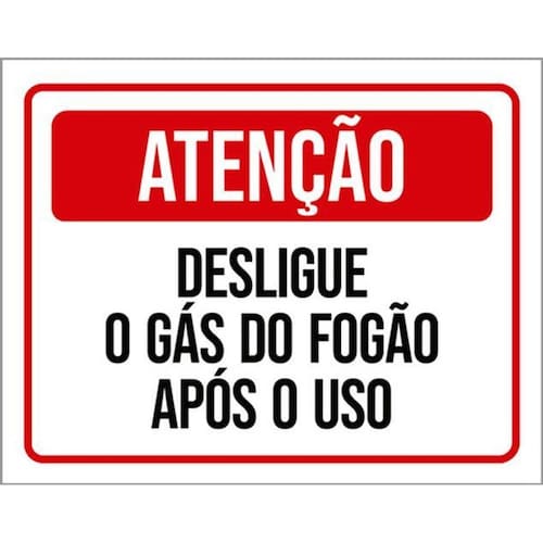 Kit 3 Placas Atenção Desligue Gás Fogão Após Uso Placas de sinalizaço fabricadas com poliestireno de alto impacto PSAI de 2mm e impressão ultravioleta.