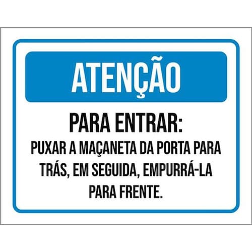 Kit 3 Placas Atenção Entrar Puxar Maçaneta Porta Para Trás Placas de sinalizaço fabricadas com poliestireno de alto impacto PSAI de 2mm e impressão ultravioleta.