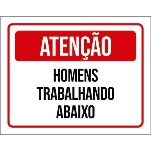 Kit 3 Placas Atenção Homens Trabalhando Abaixo 36x46 Placas de sinalizaço fabricadas com poliestireno de alto impacto PSAI de 2mm e impressão ultravioleta.