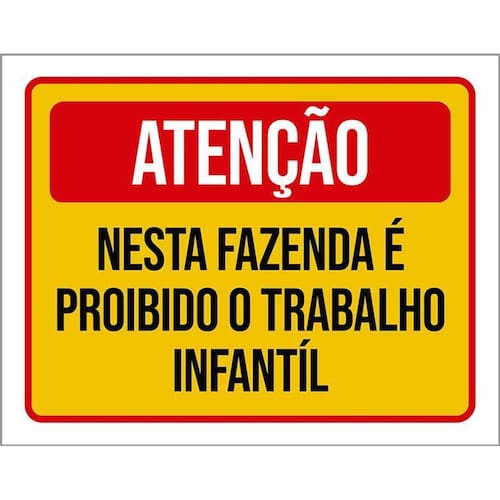 Kit 3 Placas Atenção Nesta Fazenda Trabalho Infantíl Placas de sinalizaço fabricadas com poliestireno de alto impacto PSAI de 2mm e impressão ultravioleta.