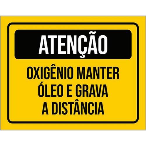 Kit 3 Placas Atenção Oxigênio Manter Óleo Grava Distância Placas de sinalizaço fabricadas com poliestireno de alto impacto PSAI de 2mm e impressão ultravioleta.
