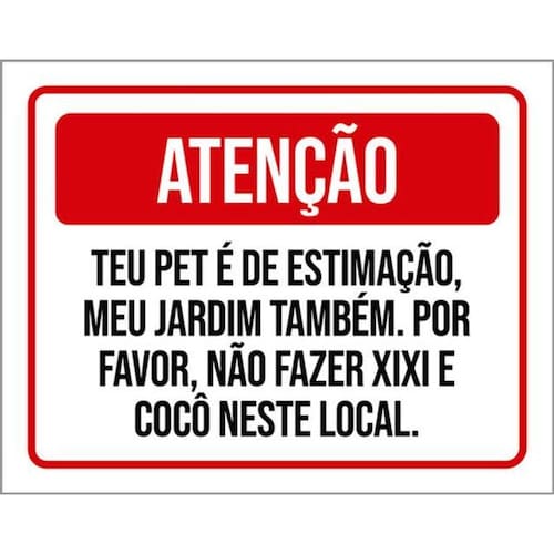 Kit 3 Placas Atenção Pet Estimação Jardim Xixi Cocô Placas de sinalizaço fabricadas com poliestireno de alto impacto PSAI de 2mm e impressão ultravioleta.