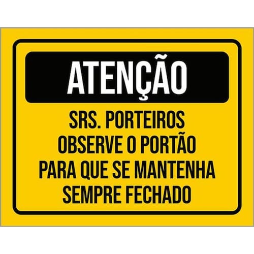 Kit 3 Placas Atenção Porteiros Observe Portão Sempre Fechado Placas de sinalizaço fabricadas com poliestireno de alto impacto PSAI de 2mm e impressão ultravioleta.