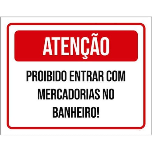 Kit 3 Placas Atenção Proibido Entrar Mercadorias Banheiro Placas de sinalizaço fabricadas com poliestireno de alto impacto PSAI de 2mm e impressão ultravioleta.