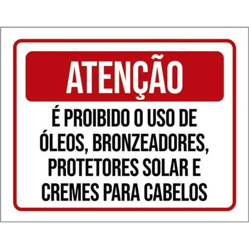Kit 3 Placas Atenção Proibido Uso Óleos Cremes Cabelo Placas de sinalizaço fabricadas com poliestireno de alto impacto PSAI de 2mm e impressão ultravioleta.